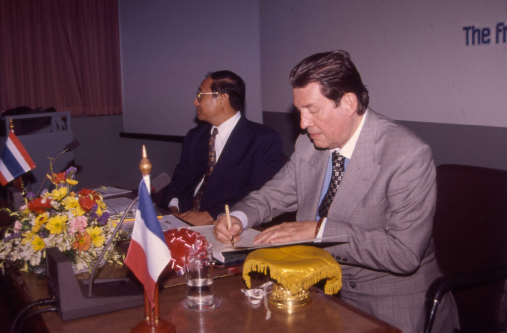 ฉบับที่ 1 เมื่อวันที่ 13 ตุลาคม พ.ศ. 2534 ที่กรุงเทพฯ ระหว่างรัฐมนตรีว่าการกระทรวงการคลังของประเทศไทย และรัฐมนตรีว่าการกระทรวงการคลังของประเทศฝรั่งเศส ตามโครงการให้ความช่วยเหลือในการพัฒนาเศรษฐกิจแบบให้เปล่าต่อประเทศไทย โดยผ่านทางกรมวิเทศสหการ และ Credit National ของฝรั่งเศส