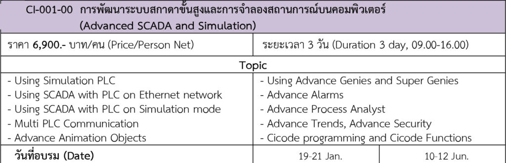 1. CI-001-00 การพัฒนาระบบสกาดาขั้นสูงและการจำลองสถานการณ์บนคอมพิวเตอร์ (Advanced SCADA and Simulation)