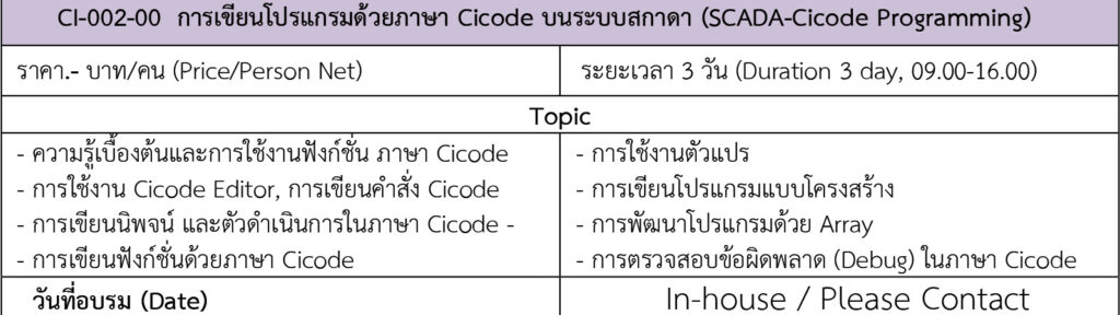 2. CI-002-00 การเขียนโปรแกรมด้วยภาษา Cicode บนระบบสกาดา (SCADA-Cicode Programming)