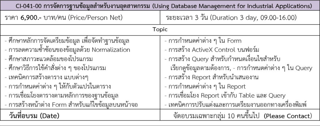 7. CI-041-00 การจัดการฐานข้อมูลสำหรับงานอุตสาหกรรม (Using Database Management for Industrial Applications)