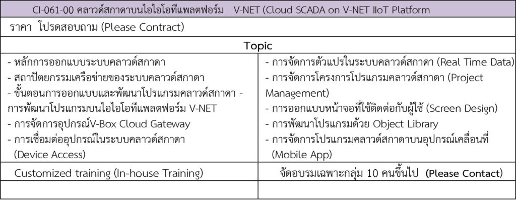 13. CI-062-00 คลาวด์สกาดาบนไอไอโอทีแพลตฟอร์ม V-NET ขั้นสูง (Advanced Cloud SCADA on V-NET IIoT Platform)