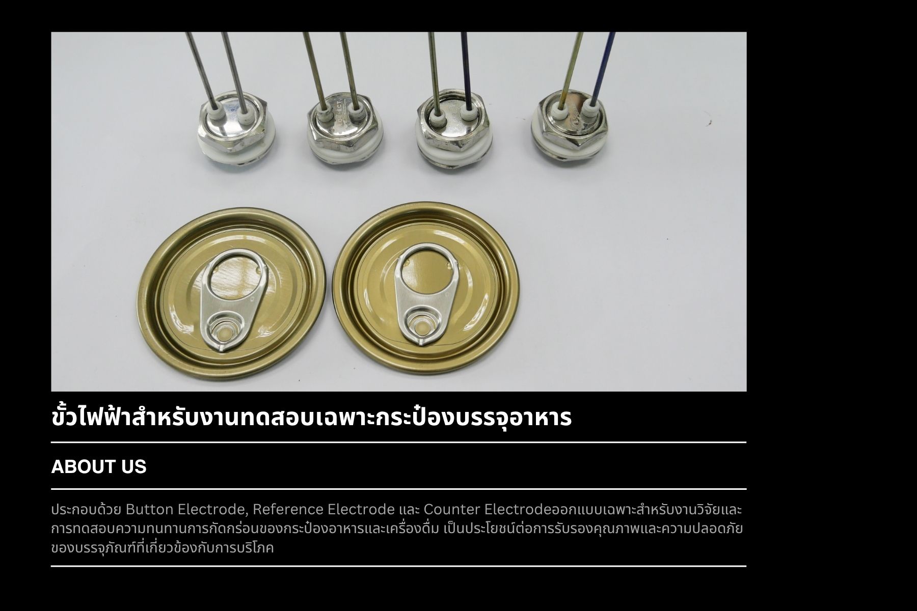 Electrodes for Food Can Testing This set includes Button, Reference, and Counter Electrodes specifically designed for evaluating corrosion resistance in food and beverage cans. It enhances research and quality assurance processes to ensure the safety and durability of consumer packaging materials.(Click)